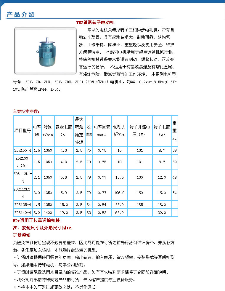 YEZ系列錐形轉(zhuǎn)子制動(dòng)電動(dòng)機(jī)